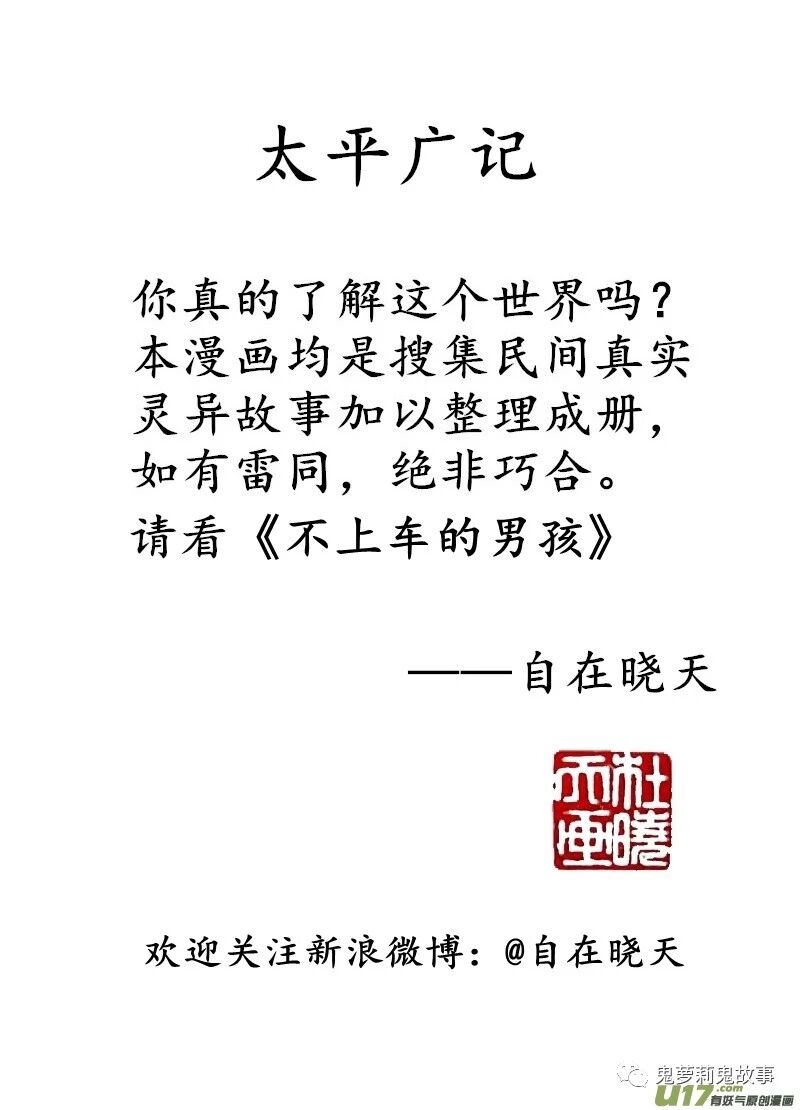 你真的了解这个世界吗?本漫画均是搜集民间真实灵异故事加以整理成册,如有雷同,绝非巧合。请看《不上车的男孩》。