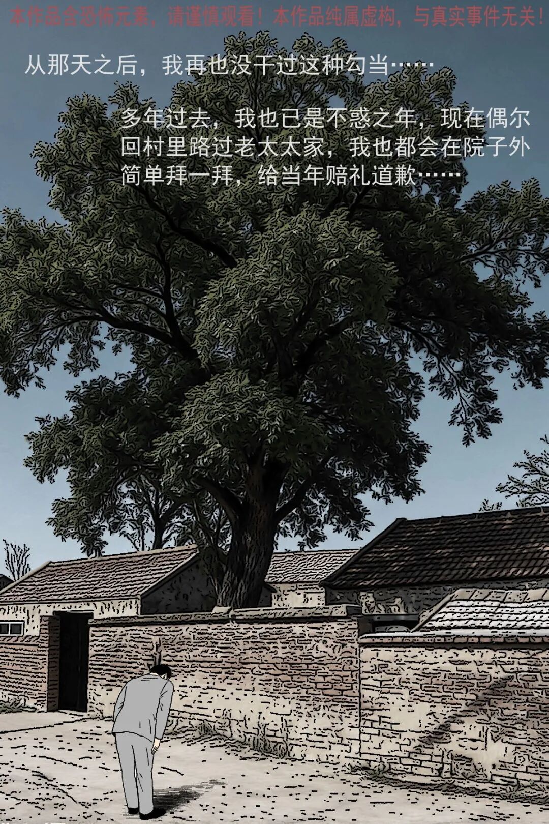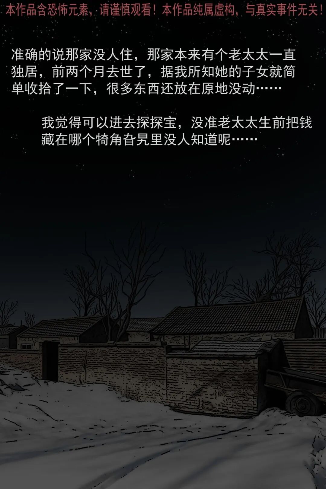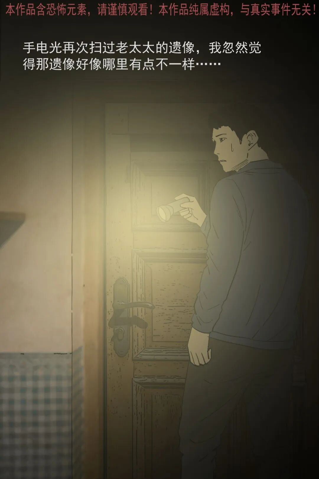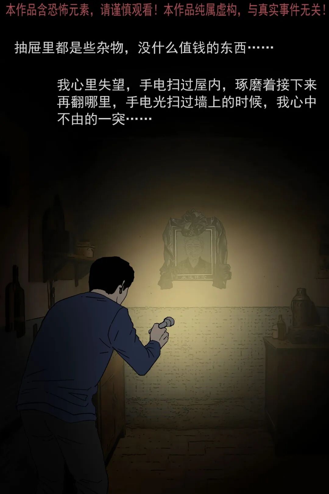 辍学后游手好闲的男主,因没钱想去村里刚过世两个月的独居老太太家偷东西,半夜潜入后发现屋内陈设整齐,翻找无果时看到老太太的遗像,起初没在意,后续几次看遗像,发现老太太的表情从慈祥逐渐变得阴沉狰狞,男主吓得认错后退,转身想跑时竟迎面撞见老太太,他惨叫着拼命逃出,此后再也不敢做偷鸡摸狗的事,多年后路过老太太家还会特意拜一拜赔罪